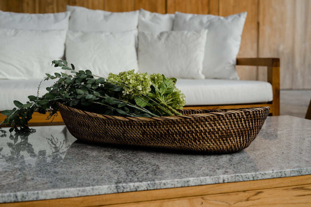 The Natuna Oval Tray is a must-have for any gardener or host. Its unique shape and large design make it perfect for gathering garden produce or serving as a fruit bowl. This versatile tray can also double as a beautiful centerpiece, adding a touch of elegance to any table. Crafted with functionality and style in mind, the Natuna Oval Tray is a valuable addition to any home.