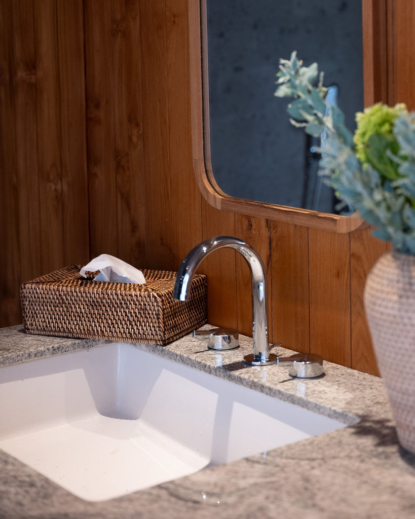 Having a box of tissues within reach is always practical. Every rectangular cardboard tissue box gets a stylish makeover with its own rattan disguise. The weightiness of the cover ensures that when you pull out a tissue, the Talise tissue box stays firmly in place. Its compact size makes it perfect for placement on a desk or kitchen island without overwhelming the space.