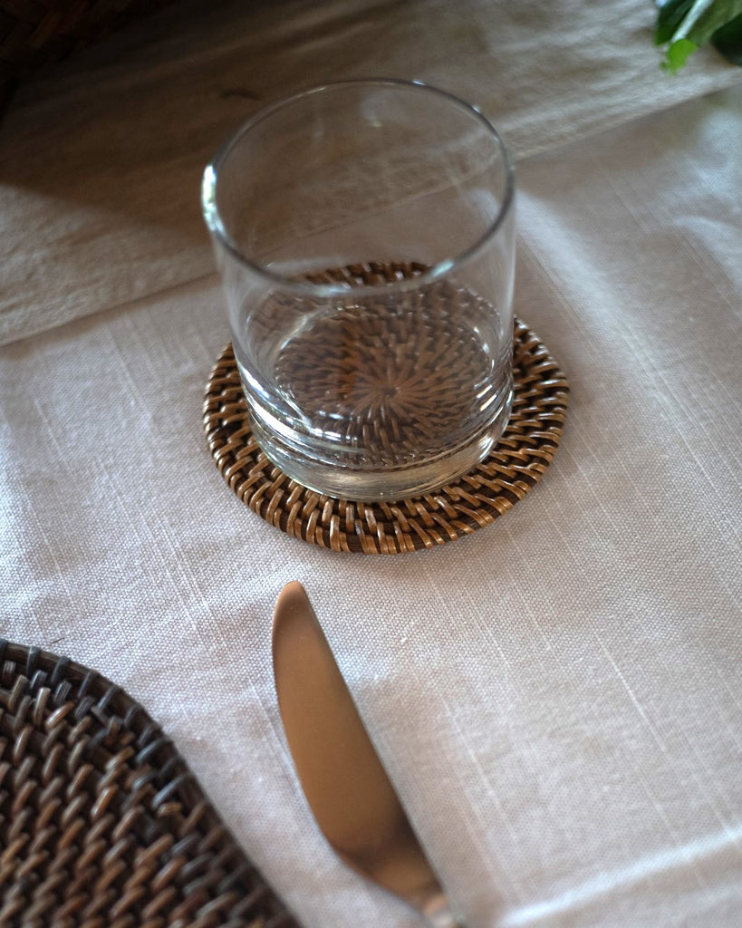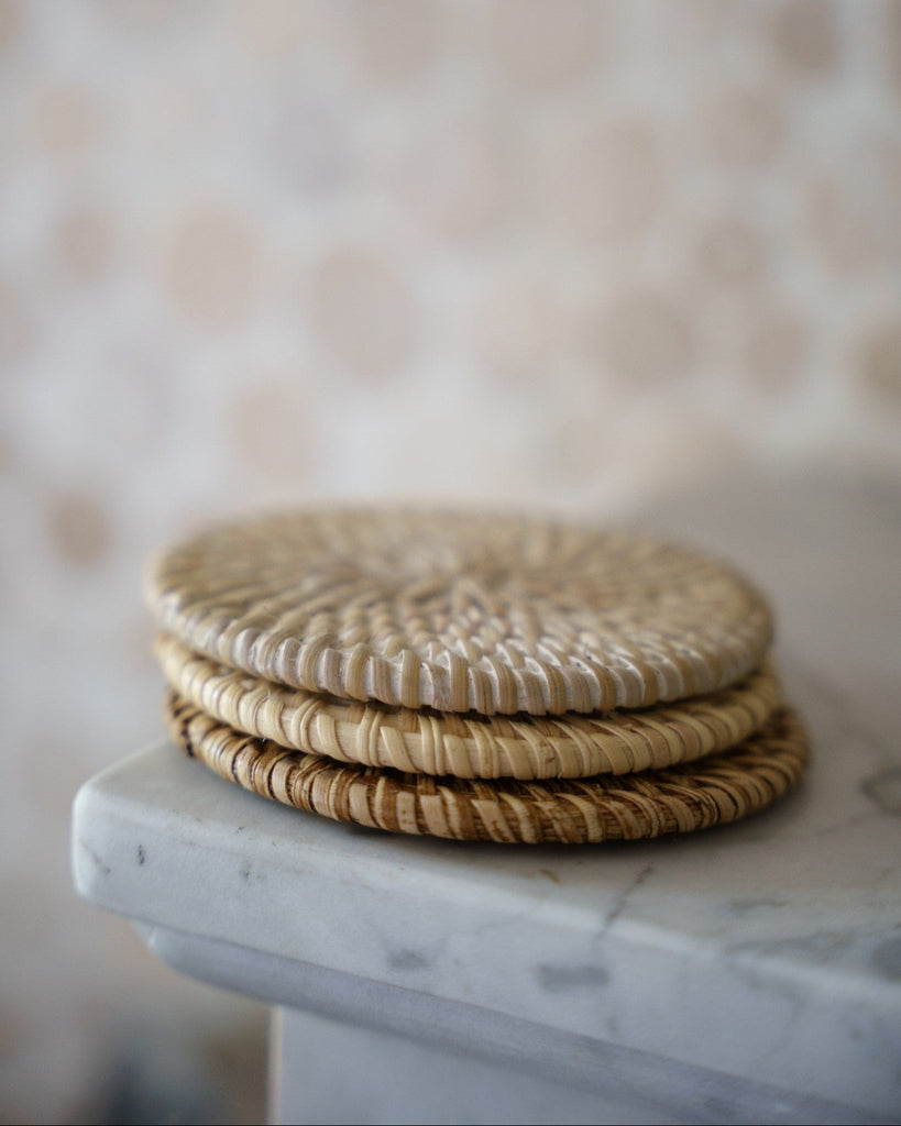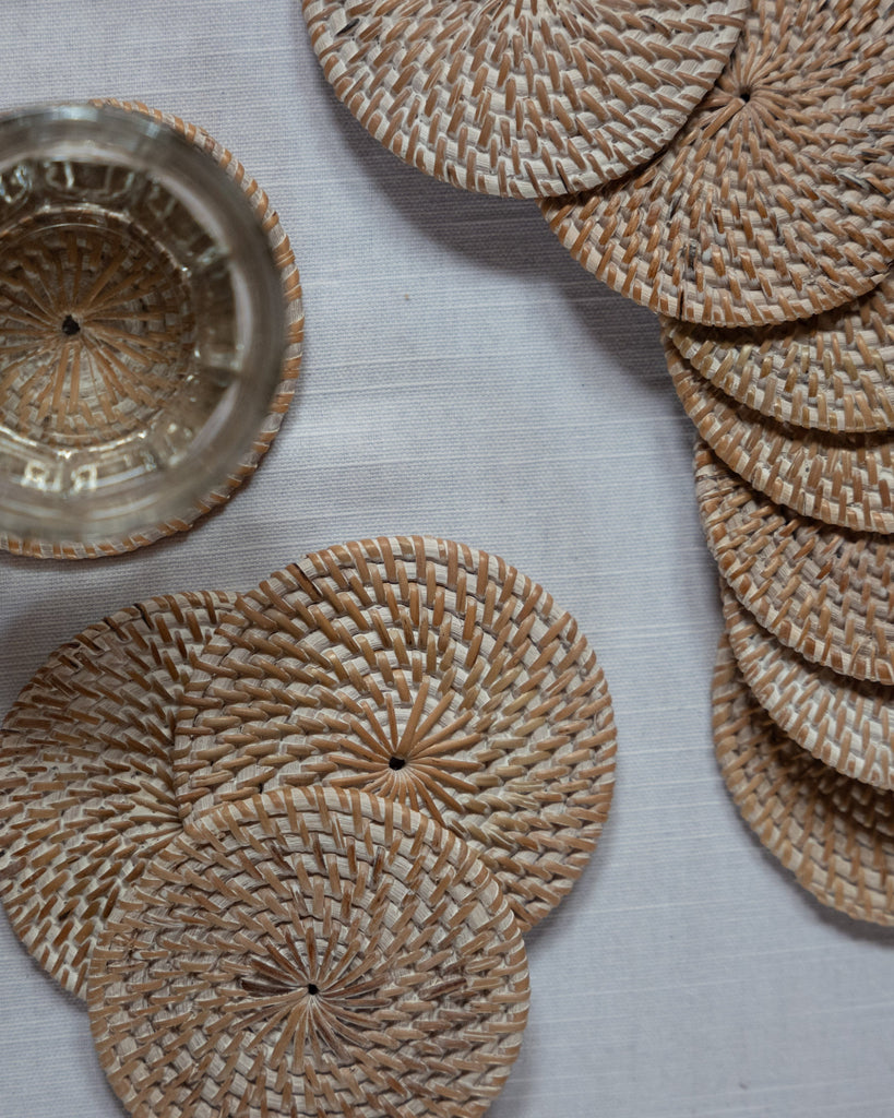 The role of coasters in your home  should be beyond mere practicality. While serving to protect surfaces from scorch- and watermarks, these rattan coasters also introduce interesting texture to your space. Available in tidy squares or opt for the round ones for a softer aesthetic. Each set includes six coasters accompanied by a holder for organized storage when not in use.