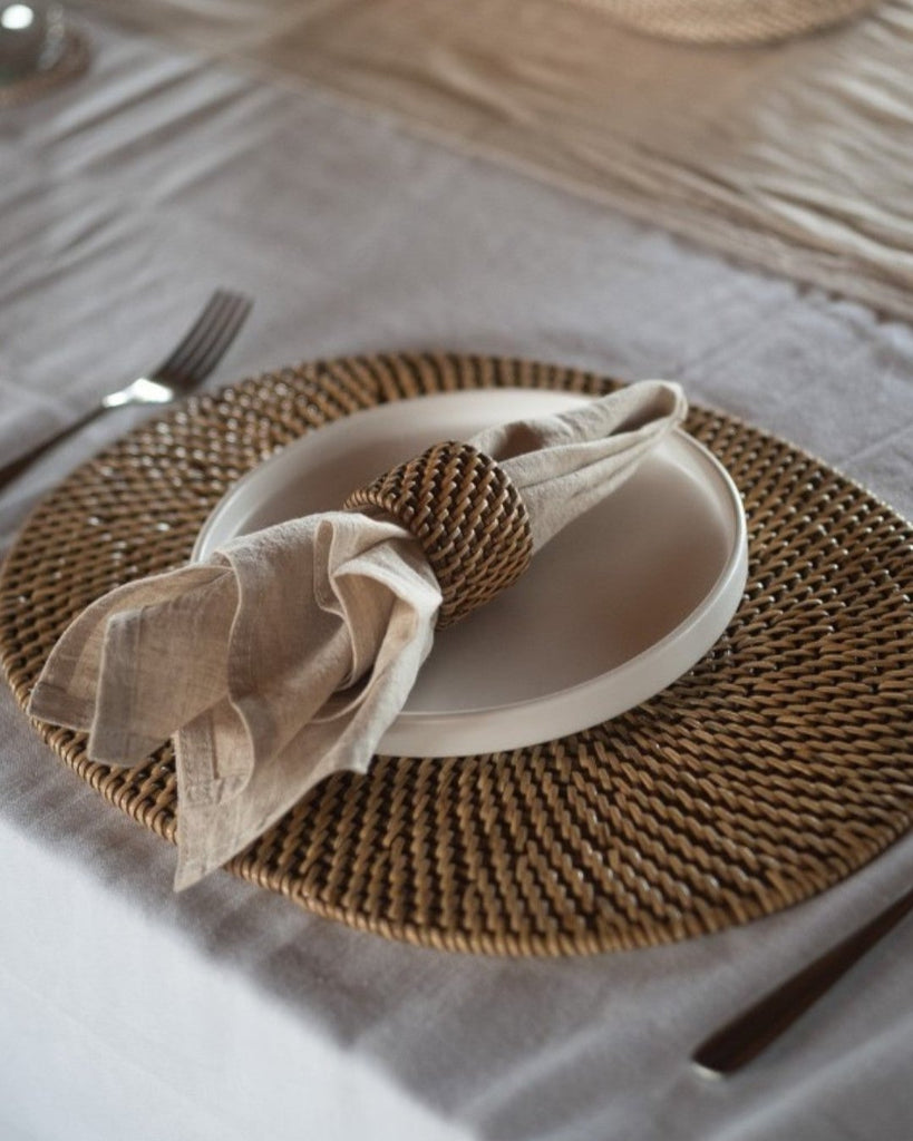 Our Talise napkin rings are hand crafted in a tight weave for both a tactile and robust finish. The provided measurements serve as a helpful reference, and a slight variation should be expected as our products are all handmade.