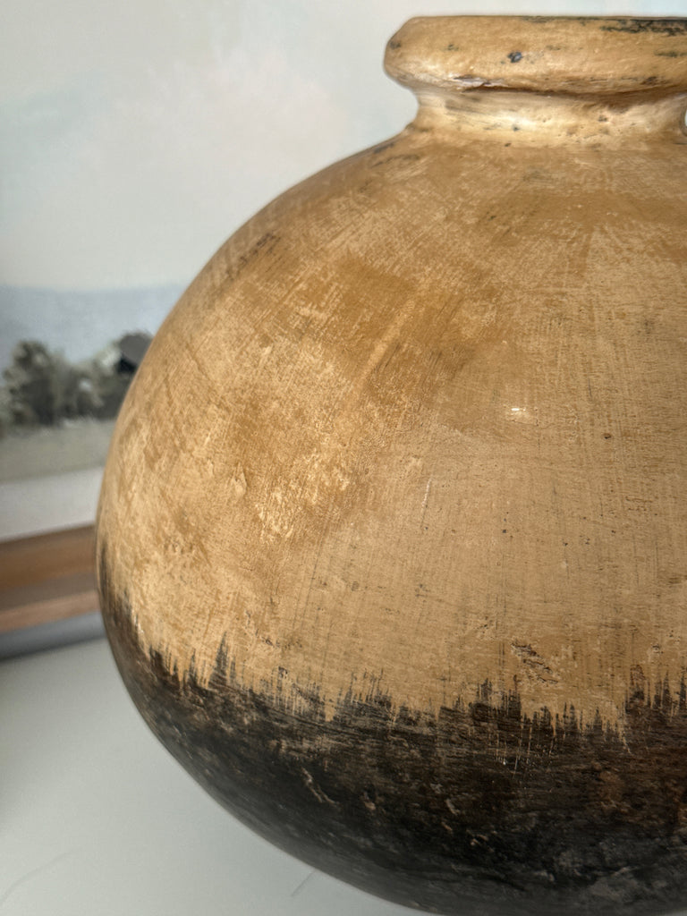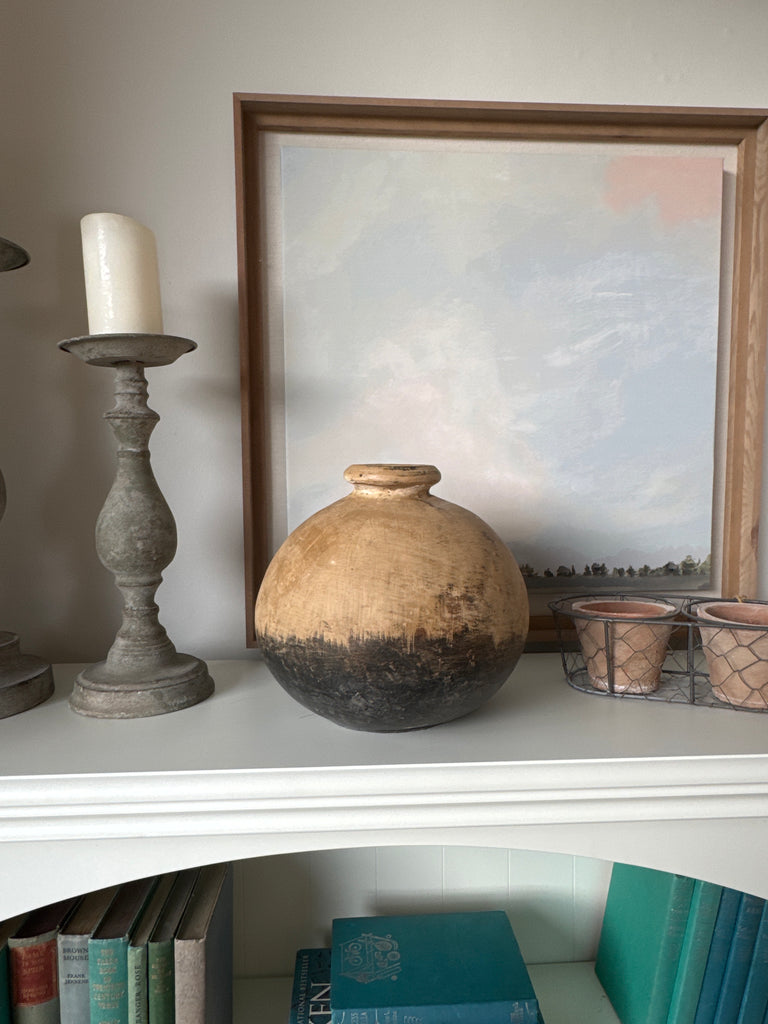 Our Chandra Two-Tone Vase, featuring a rustic, handmade design in natural terracotta tones. Its earthy hues and artisanal craftsmanship bring warmth and character, making it the perfect centrepiece for displaying dry or faux flowers or standing alone as a statement piece.